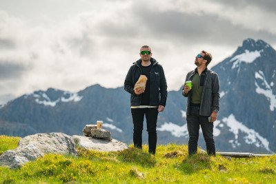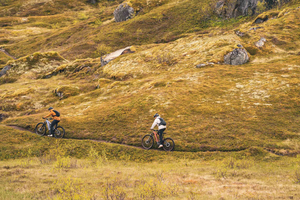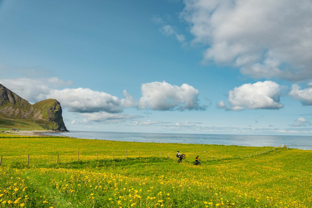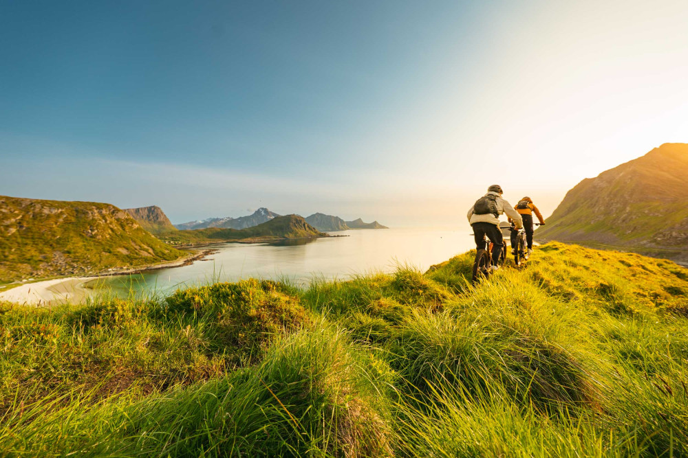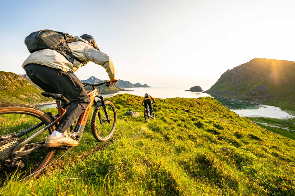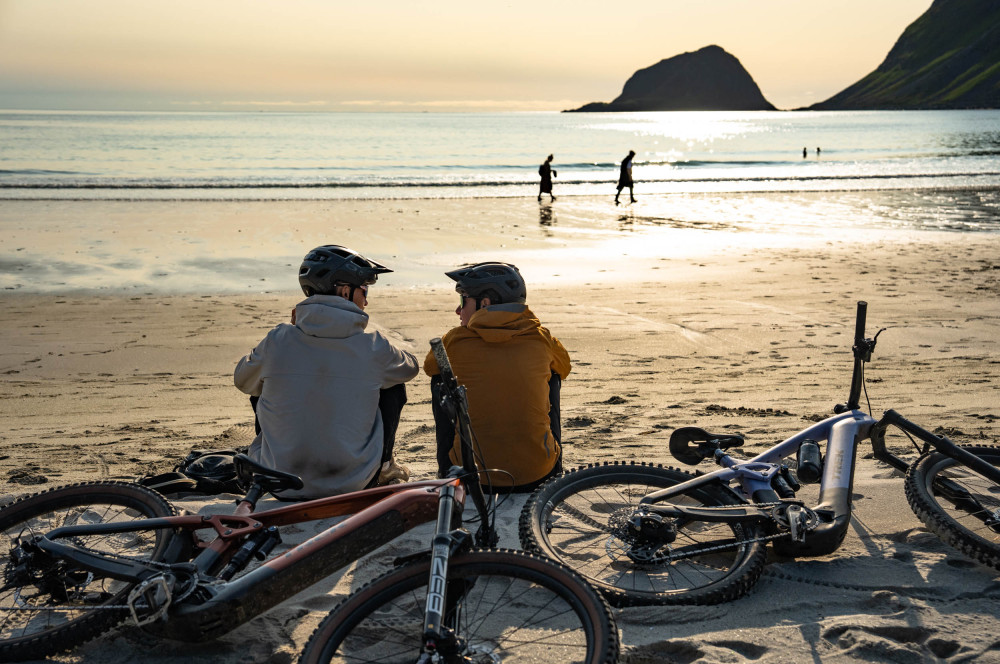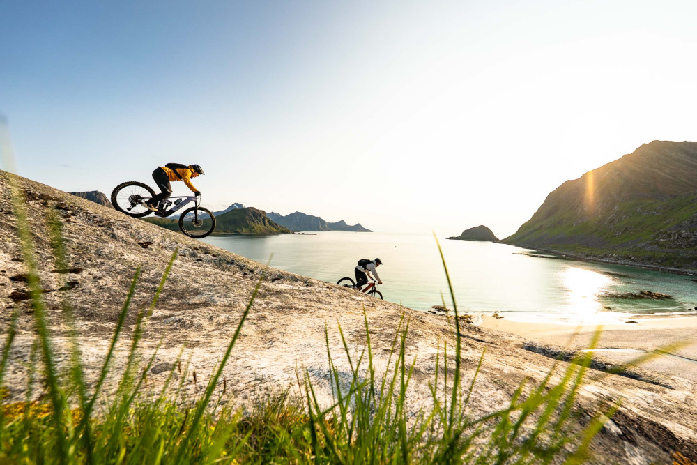The two eMTB athletes joined an adventure in Lofoten — with endless photos and filming, and the duo Jon and Sverre in tow.
